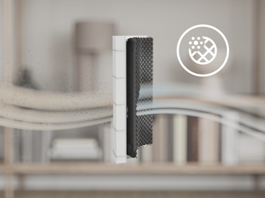 AirSurround-systemet genererer en sterk, spiralformet luftstrøm som sørger for at ren luft fordeles jevnt i hele rommet.