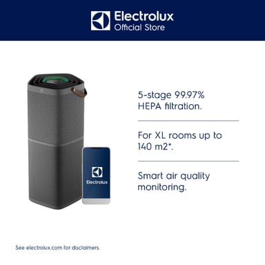 Electrolux Pure 600 XL luftrenser EPO60771DG renser rom på opptil 145 m² på bare 3.2 minutter med sin AirSurround-spiralluftstrøm. Den har et 5-trinns HEPA-filtreringssystem og et aktivt karbonfilter som fanger opp fint støv og allergener.Les mer om produktet