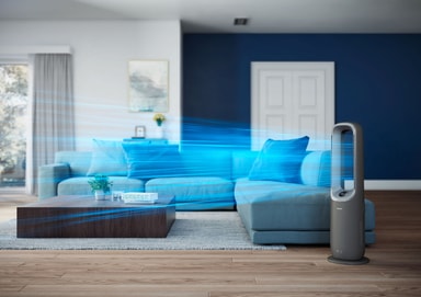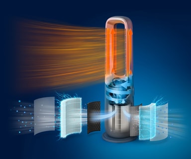 Luftrenseren fungerer også som vifte og varmeapparat. Det bladløse designet fordeler luften jevnt i hele rommet og sørger for en jevn strøm av frisk luft.