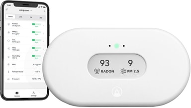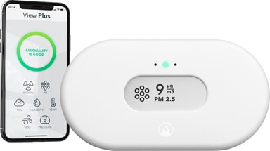 Vi tilbringer omtrent 90 % av tiden vår innendørs – View Plus forteller deg hva som finnes i luften og er en avansert luftkvalitetsmåler med syv sensorer som måler radon, partikler/svevestøv (PM 2.5), karbondioksid (CO2), VOC (luftbårne kjemikalier), luftfuktighet, temperatur og lufttrykk. Perfekt for kjøkken og stue hvor familien samles.