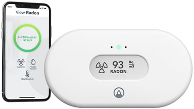 Airthings View radonmåler 2989 hjelper deg å holde hjemmet trygt. Enheten jobber kontinuerlig for å oppdage nivået av denne radioaktive gassen og gir deg øyeblikkelig overblikk med sin brukervennlige skjerm. Og takket være appen, kan du følge med på ditt innendørsklima uansett hvor du er.