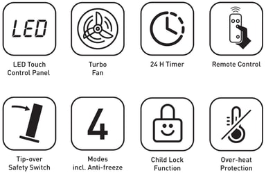 Den innebygde turboviften forbedrer varmesirkulasjonen, slik at rommet varmes opp raskere og jevnere.