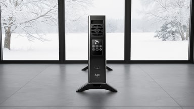 Apt Cozy varmeovn har et kompakt, minimalistisk design som passer inn i de fleste rom. Den er frittstående og lett å flytte, noe som gjør den ideell for bruk både hjemme og på kontoret.