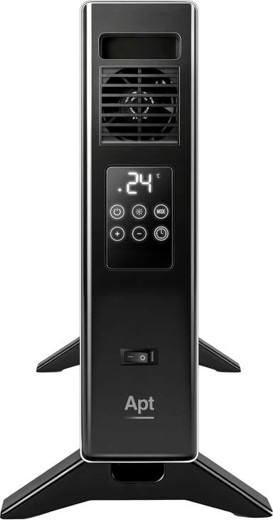 Apt Cozy digital konveksjons-varmeovn 2000W er en kompakt frittstående enhet med 1000W/2000W-modus, justerbar temperatur (5°C-45°C), turbovifte, LED-berøringspanel, timer, fjernkontroll, barnesikring samt overopphetings- og veltebeskyttelse.Les mer om produktet