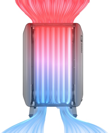 Den oljefylte varmeovnen bevarer varme, og holder rommet varmt selv etter den er avskrudd. De innebygde viftene fordeler varmen raskt i hele rommet.