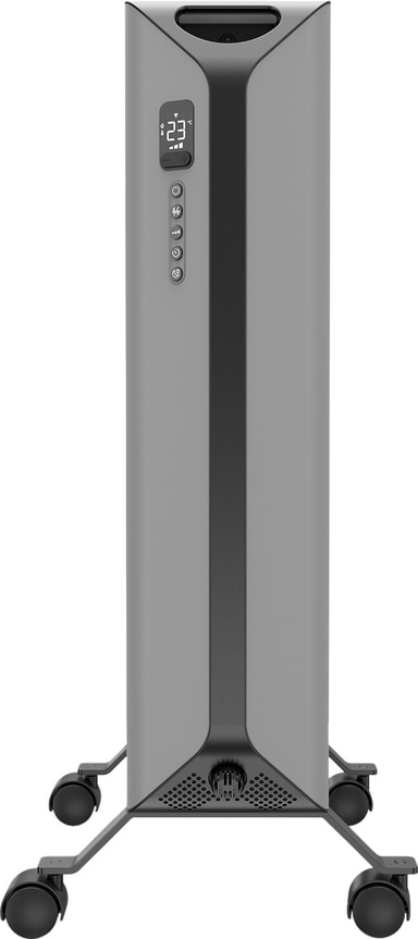 Den kompakte, frittstående oljeovnen passer enkelt inn på mindre rom slik som under bord eller i romhjørner, og hjulene gjør den lett å bevege på.