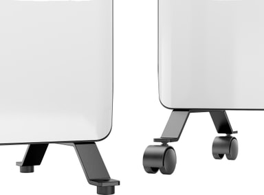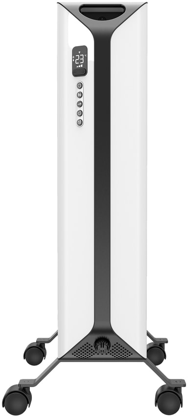 Den kompakte, frittstående oljeovnen passer enkelt inn på mindre rom slik som under bord eller i romhjørner, og hjulene gjør den lett å bevege på.
