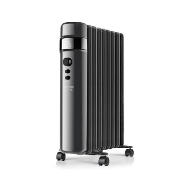Programmerbart oljefylt element med tre effektmoduser, Eco-modus, 24H timer og beskyttelse mot overoppheting og veltesikring.
