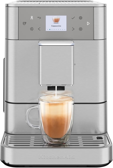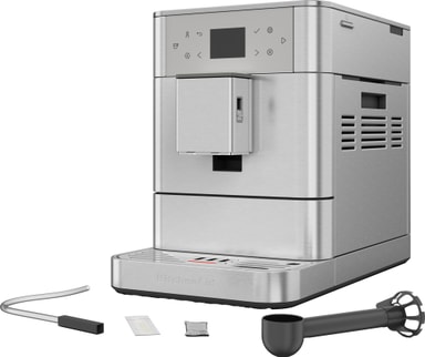 KitchenAid KF6 kaffemaskin 5KES8556ESX har en 5-tommers berøringsskjerm, 2,2 liters vanntank og avtakbar bønnebeholder. Skaff deg en helautomatisk espressomaskin med automatisk avstengingsfunksjon for ekstra brukervennlighet.Les mer om produktet