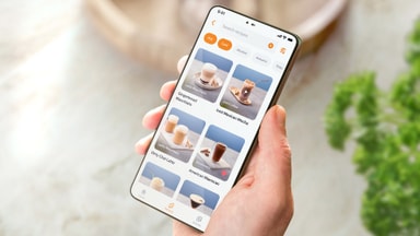 Utforsk nye kaffeoppskrifter og lær alt du trenger å vite om din nye espressomaskin med HomeID-appen.