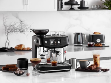Sage Oracle Jet kaffemaskin SES985BTR bringer kaféopplevelsen til kjøkkenbenken. Den responsive berøringsskjermen, presisjonskvernen med 45 innstillinger og Auto MilQ-funksjonen skaper kremet mikroskum med alle typer melk. ThermoJet-varmesystemet sørger for rask oppvarming og optimal smaksekstraksjon.