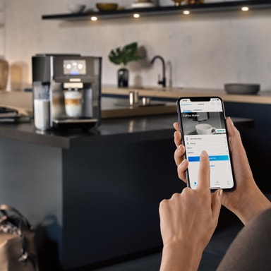 Kontroller kaffemaskinen din fra telefonen din mens du ligger i sengen, og nyt et bredt utvalg av spesialitetsoppskrifter i tillegg til herlige klassikere takket være Home Connect-appen til Android og iOS.