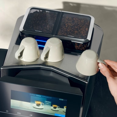 • Nyt forhåndsvarmede kopper for en herligere opplevelse takket være den aktive koppevarmeren.