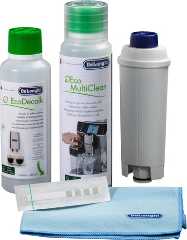 Med DeLonghi Coffee Care Kit DLSC306 kan du bevare den gode kaffesmaken og regelmessig rengjøre og avkalke kaffemaskinen din. Dette komplette settet inkluderer alt du trenger for å forhindre at kaffemaskinen ikke fungerer optimalt, og vil forlenge levetiden til maskinen betydelig.
