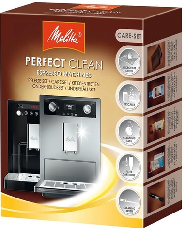 Et perfekt rengjøringssett for rene kaffemaskiner. Melitta® Espresso Perfekt Clean CareSet rengjøringssett er egnet for automatiske kaffemaskiner og gir perfekt pleie for maskinen din. Produktene er spesielt tilpasset Melitta Caffeo-maskiner og gjør vedlikeholdet enkelt og effektivt.