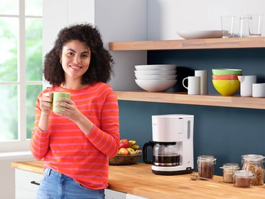 Brygg deilig kaffe akkurat som du liker den med Braun Breakfast kaffemaskin og dens OptiBrewSystem. AromaCarafe-kannen har kapasitet for opptil 10 kopper aromatisk kaffe. Kaffemaskinen er enkel å bruke, takket være det ergonomiske åpne håndtaket og et antidrypp-system som lar deg sette kaffemaskinen på pause og helle kaffe mens den fremdeles brygger kaffe.