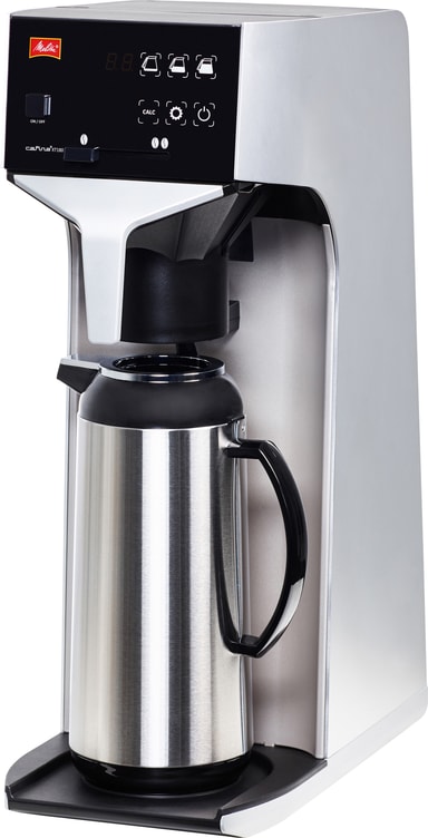 Melitta Cafina XT180 TWC profesjonell kaffetrakter er et elegant apparat som lager nydelig kaffe og kommer med et automatisk avstengingssystem for sikker bruk. Den er enkel å vedlikeholde takket være avkalkingsprogrammet. Denne modellen har forbindelse for vannforsyning, noe som gjør den ideell til profesjonell bruk, for eksempel på kontor.
