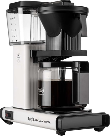 Moccamaster One Switch lager perfekt kaffe på en enkel måte. Den har en varmeplate som holder kaffen på ideell temperatur, slår seg av automatisk etter 40 minutter og en filterholder med dryppstopp for presis trakting. Dette er det perfekte valget for deg som verdsetter både kvalitet og enkelhet i kaffe.