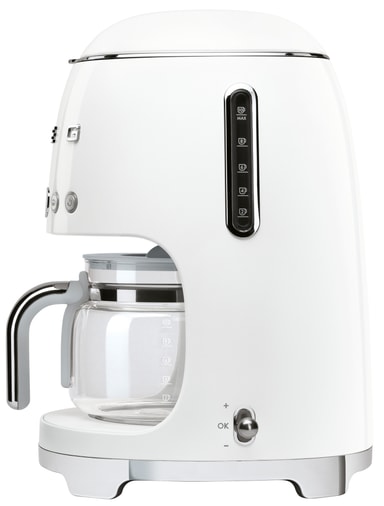 Enten du liker kaffen din med en mild eller intens aroma, sørger Smegs kaffemaskin med 50-talls design for at du kan nyte kaffen til det fulleste. Takket være rask tilberedelsesevne, Keep Warm-funksjonen, aromaintensitetsknappen og en kapasitet på 1,25 liter, vil du alltid ha varm kaffe tilpasset dine ønsker og behov.
