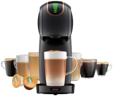 Nescafé Dolce Gusto Genio S Share kapselmaskin EDG426.B er en stilig og kompakt maskin som brygger både varme og kalde drikker. Den har en 0,8 liters vanntank, automatisk avstengning etter 9 minutter og en gjenbrukbar kopp du kan skrive på.Les mer om produktet