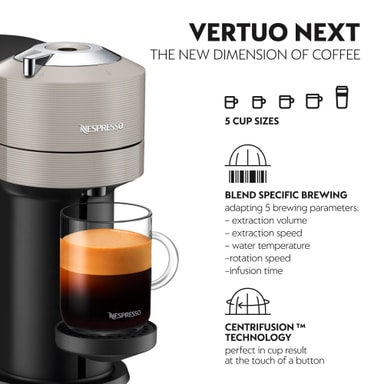 NESPRESSO® Vertuo Next kaffemaskin fra Krups, Lys grå