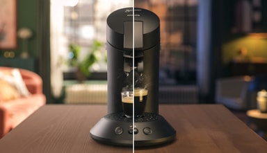 Senseo Original Plus lar deg tilberede én eller to kopper med kaffe eller te med en enkelt trykk på en knapp.
