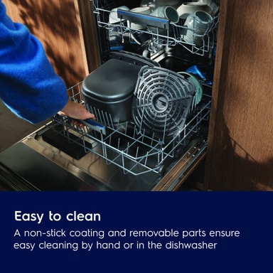 800 Steam Air Fryer har et superclean-belegg som gjør den rask og enkel å rengjøre etter at du har laget mat. Vask for hånd eller putt de avtakbare delene i oppvaskmaskinen.