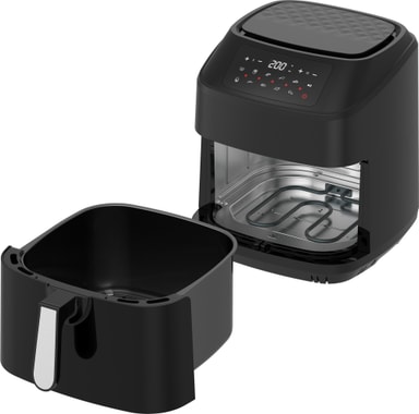 Airfryeren har en kapasitet på9,2 liter, nok til å tilberede pommes frites til en gruppe på7-8 mennesker. Du kan også bruke airfryeren til å tilberede ukentlige måltider.