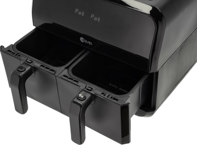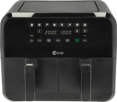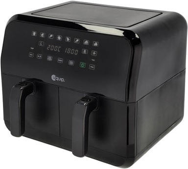 Equip Dual airfryer 34761 har en effekt på 1700W og åtte forhåndsinnstilte programmer for steking, grilling, broling, og baking. Aifryeren har to 4l-kurver som kan brukes samtidig, samt et praktisk LED-touchdisplay, så du kan justere temperaturen.Les mer om produktet