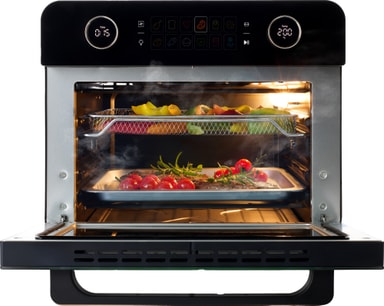 Airfryeren har tolv forhåndsinnstilte programmer, som lar deg airfrye, steke, bake, dehydrere, og grille kjøtt og grønnsaker. Touchdisplayet har også en rotissiere-funksjon, for enda mer praktisk matlaging.