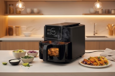 Med en effekt på 1700 W og en ekstra stor kurv på 8 L er denne airfryeren ideelt egnet for familiemåltider eller matlaging i større porsjoner. Den gir mer brukbar tilberedningsplass og sikrer jevn luftstrøm for sprø resultater uten at maten må stables.