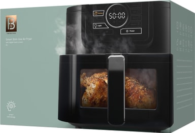 F&B Slim Smart airfryer har et elegant, plassbesparende slankt design som passer enkelt på kjøkkenbenken og har plass til lengre matvarer som lammekoteletter eller fiskefileter. Det gjennomsiktige vinduet lar deg følge med på matlagingen uten å åpne kurven.