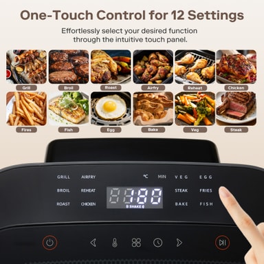 Velg mellom 13 forhåndsinnstilte tilberedningsprogrammer, inkludert steking, baking, grilling, og oppvarming av kjøtt og grønnsaker.