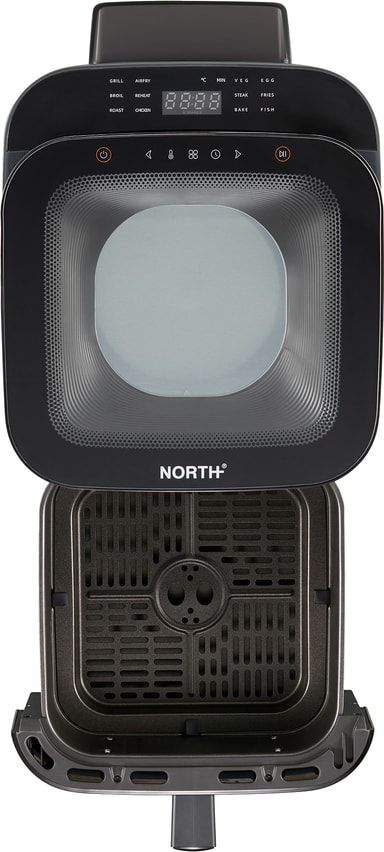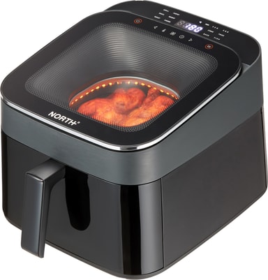 North airfryer 205003 har en 6,5-liters stekekurv som kan bake, steke, og grille kjøtt og grønnsaker. Det digitale displayet lar deg justere tilberedningstiden og temperaturen, og du kan enkelt velge mellom 13 forhåndsinnstilte programmer med et trykk. Kurven kan maskinvaskes når maten er tilberedt, for enkel rengjøring.