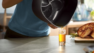 Luftfryteren på 7,2 liter kan romme 1400 g med grønnsaker, ti kyllinglår, seks laksefileter eller ni muffins - perfekt for familiemåltider.