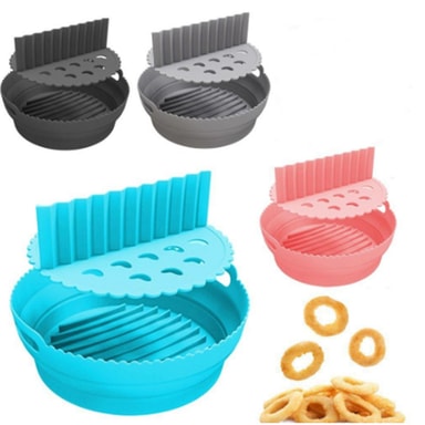 Rund form av matgodkjent silikon. Den passer perfekt inn i en airfryer og forhindrer klebrige og brente matrester i airfryeren. Beholderen er gjenbrukbar og kan vaskes i oppvaskmaskin.