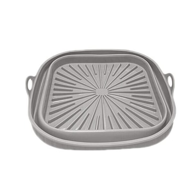 Dette firkantede airfryer-brettet i silikon gjør matlagingen enklere og renere. Takket være den varmebestandige silikonkonstruksjonen fordeles varmen jevnt, og maten tilberedes effektivt uten å klebe seg fast i bunnen. De praktiske bærehåndtakene gjør det enkelt å løfte brettet ut av airfryeren, selv når det er varmt.