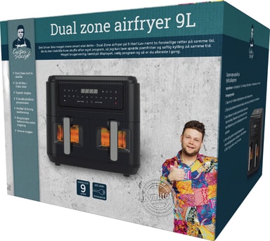 Sobczyk Dual Zone airfryer CS9323 har en total kapasitet på ni liter, med to kurver på 4,5 liter som lar deg tilberede forskjellige måltider ved forskjellige temperaturer. Det har også åtte forhåndsinnstillinger, og et temperaturspenn på 50-200°C.Les mer om produktet
