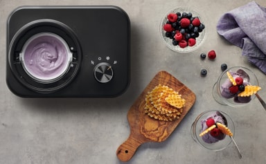 F&Bs iskremmaskin har evnen til å tilby deg en utsøkt og kald godbit innen 60 minutter takket være maskinens innebygde kompressor og enkle kontroller.