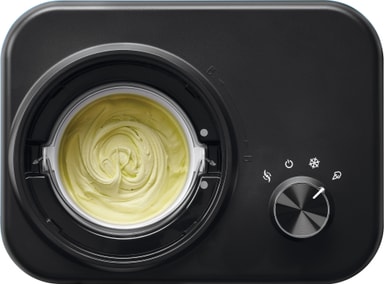 Maskinen har en kuldebevarende funksjon som holder isen kaldmed en god konsistensi opptil én time etter den er ferdig.