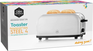 OBH Nordica 2268 er en stilfull brødrister med plass til 4 brødskiver. Start dagen med ristet brød til frokost.