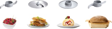 Smart lagring av tilbehør: Når foodprosessoren ikke er i bruk kan du oppbevare alt av tilbehør i bollen.