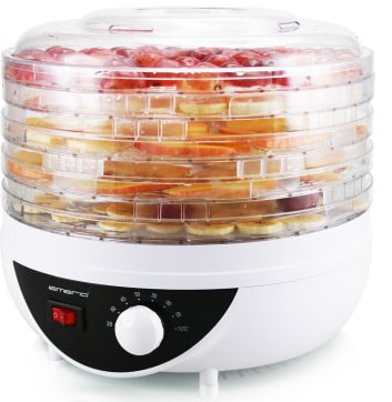 Emerio frukt og sopptørker vil effektivt tørke alle typer sopp, frukt, grønnsaker og urter. Frukt og sopptørkeren beholder vitaminer og næringsstoffer, har en effekt på 250 watt og har fem tørkebrett.