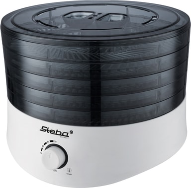 Steba mattørker ED4 har fem runde BPA-frie tørkebrett med en diameter på 24 cm, perfekt for tørking av frukt, urter, fisk, sopp, og mer. For å gi deg full kontroll over tørkeprosessen, har den et temperaturspenn på 40 - 70˚C.Les mer om produktet