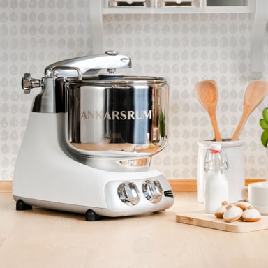 Ankarsrum tilbyr multifunksjonelle kjøkkenmaskiner med 7 års garanti og høy kapasitet.