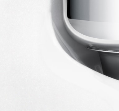 Kombinasjonen av en bolle i rustfritt stål, to stilfulle knapper og en hvitfarget underdel, gir et nydelig maskinytre som passer på alle kjøkkenbenker.