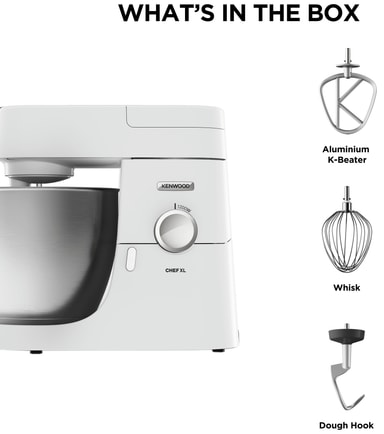 Kenwood Chef XL kjøkkenmaskin KVL4100W har en 1200W motor og en stor 6,7L rustfri stålbolle, egnet for daglig matlaging og familiebakverk. Den inkluderer K-visp, ballongvisp, deigkrok og spruthette, bruker planetarisk miksing for jevne resultater, og kan utvides med over 25 valgfrie tilbehør.