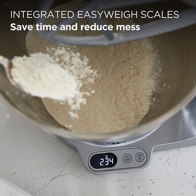 Med EasyWeigh-funksjonen kan du veie ingrediensene direkte i skålen, blenderen eller tilbehøret, slik at du slipper å bruke separate vekter og ekstra tallerkener. Denne innebygde presisjonsvekten gjør at du kan tilsette ingredienser trinn for trinn med full nøyaktighet.