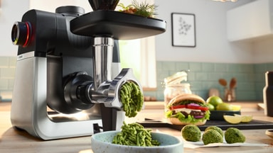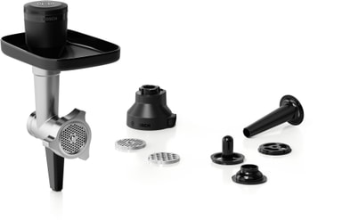Settet kommer med pølsestapper, kebbe-maker og tre kverneskiver, som forvandler kjøkkenmaskinen din til en kompakt kjøttbehandlingsstasjon.