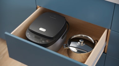 Riskokeren leveres med et avtakbart lokk som er enkelt å rengjøre. Non-stick-belegget forhindrer at det samler seg rester.